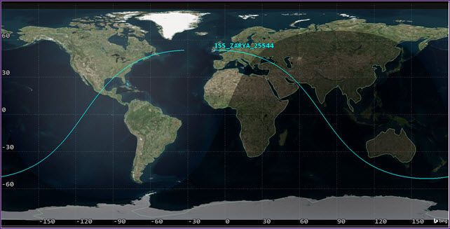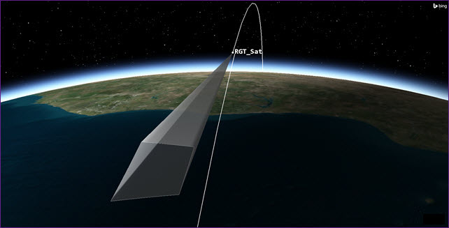 7. Change the view so that the sensor is visible between the satellite and the surface of the Earth.