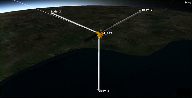 The boresite is now pointing along the negative body Y (Azimuth: 270 deg OR -90 deg) and the boresite is elevated 30 degrees (Elevation: 60 deg) from the satellite's body Z.