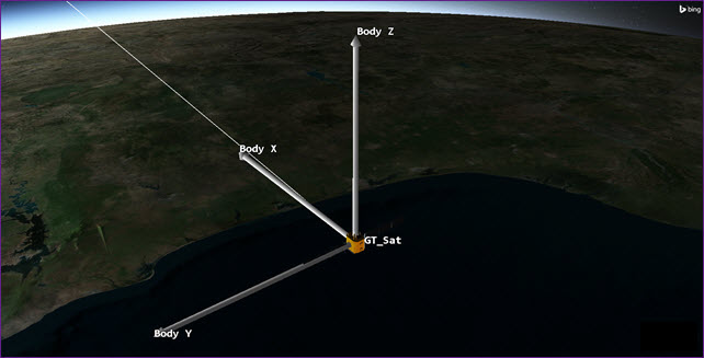 The sensor is pointing straight down with its boresite directed along the satellite's body Z axis. By default, when you attach an object onto a satellite, the object points in the body +Z direction. Here, you will point the sensor in a different direction.