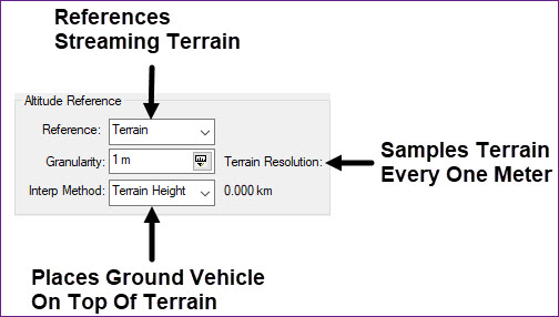 You can use the Terrain properties page of a scenario to enable streaming terrain. This enables you to view terrain features in the 3D Graphics window.