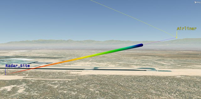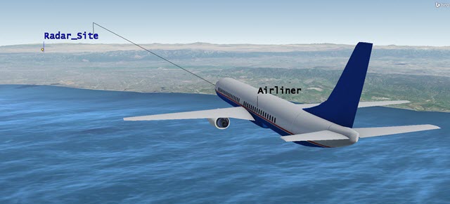 ). - Select the 3D Graphics window. You can see the Airliner with the radar site in the distance.