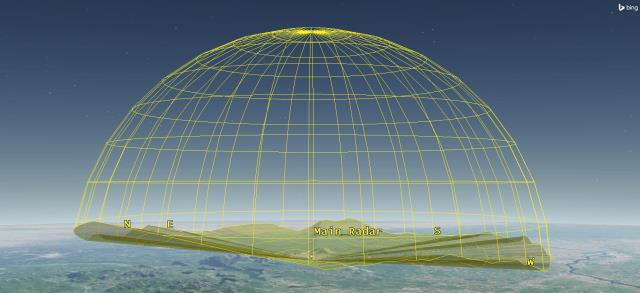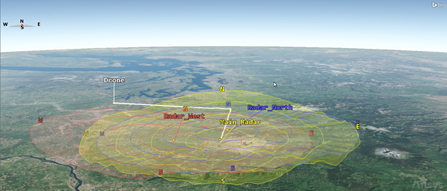 You have a good visual representation of which radar sites "might" see the cruise missile. Don't be fooled by this view. For instance, it would be easy to think that when the cruise missile turns south, Radar_North (
