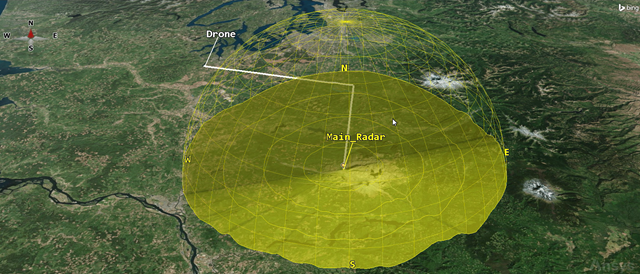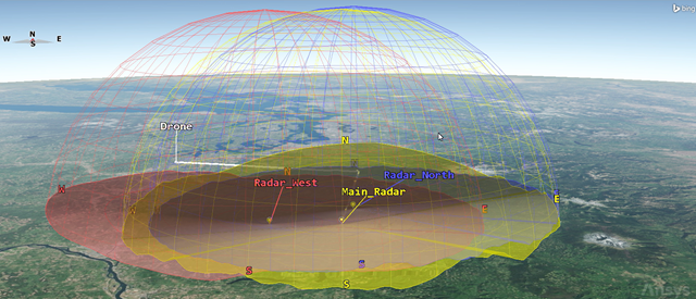 ) object and placed it at the main radar's location. You restricted it to use the terrain file analytically and restricted its range to 50 kilometers. The first test determined that it couldn't track the drone for the required time needed for a successful test. You placed two more radar systems into the training area in different locations from the main radar. Combining all three radar systems into a Constellation (