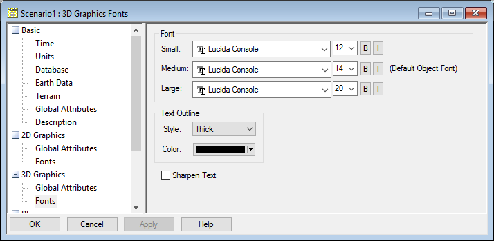 ), and select 2D Graphics - Global Attributes. Under Access, clear the Show Animate Line check box. - Labels and annotations look best in plain thick font. Thin or small font is difficult to read in a video. You can adjust the fonts under the Scenario Properties in the 3D Graphics - Fonts page.