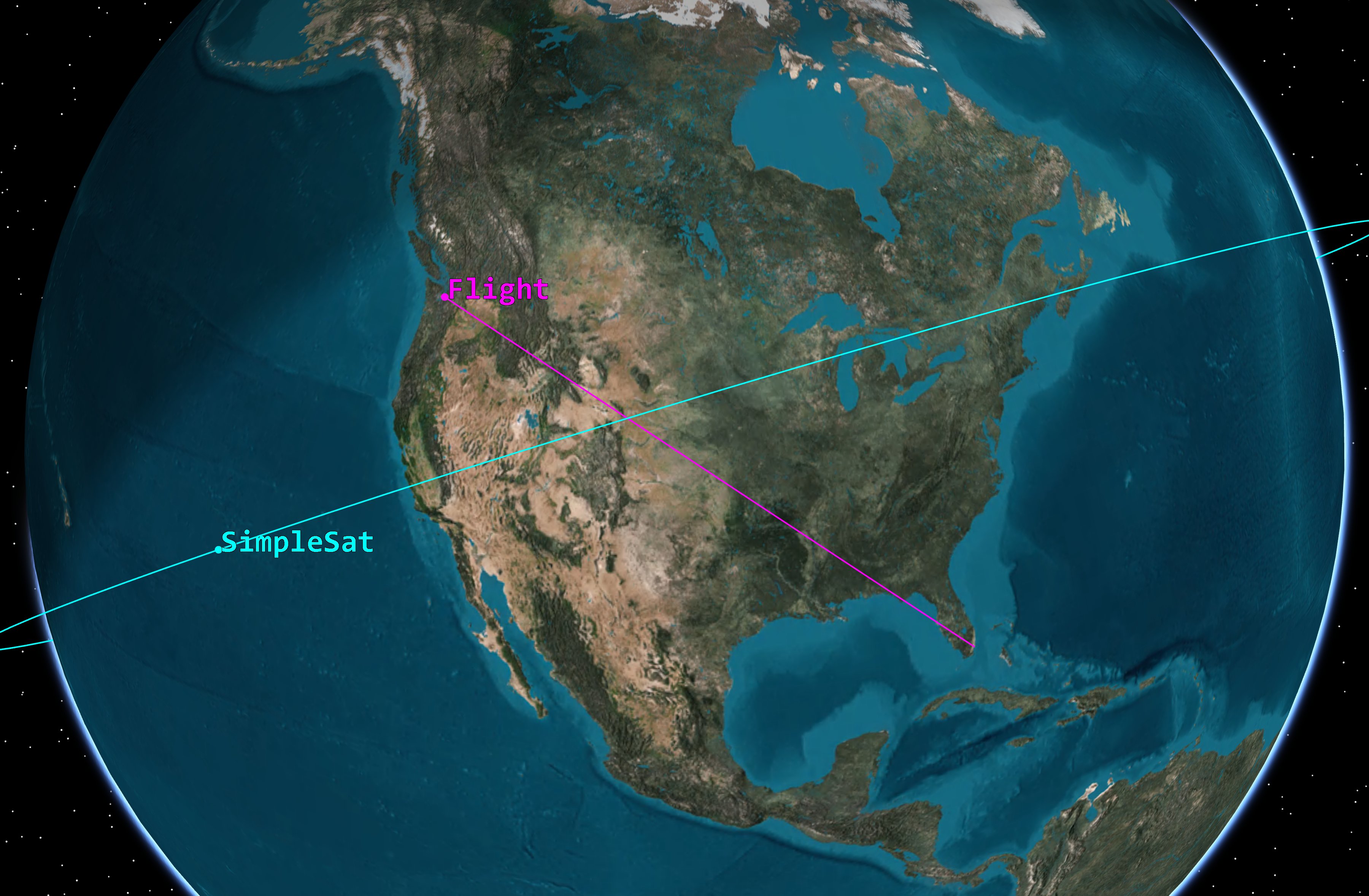 Now that the aircraft and satellite are in the scenario, we will compute access between the two objects. The plugin we loaded in (but haven't set yet) will be an access constraint. Let's first understand the access interval before we add the access constraint into the calculation.
