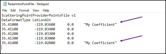- When Notepad opens, enter "My Coefficient" (include the double quotation marks) to the right of the first point. You have to enter the exact name of the component you created.