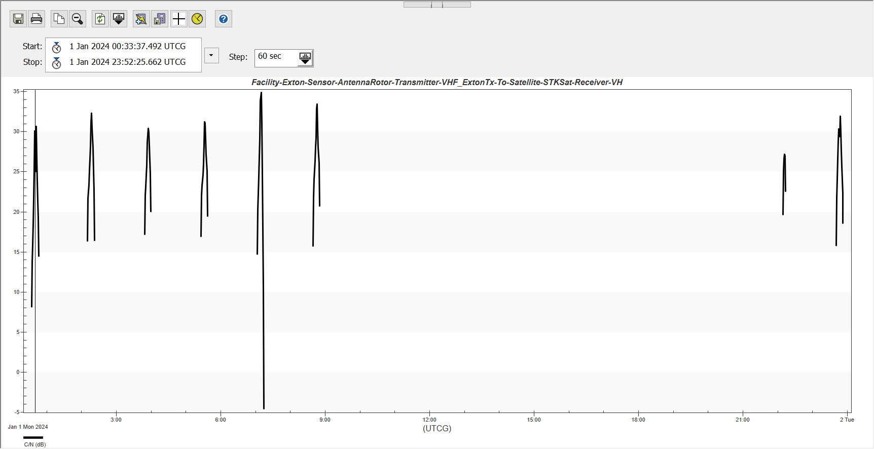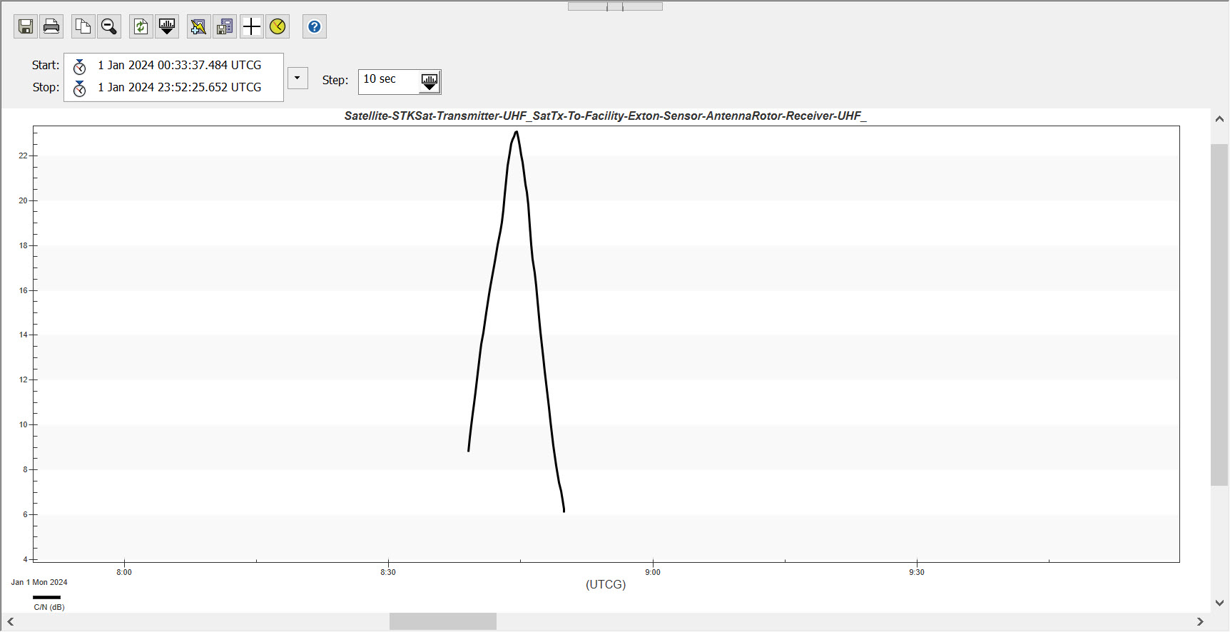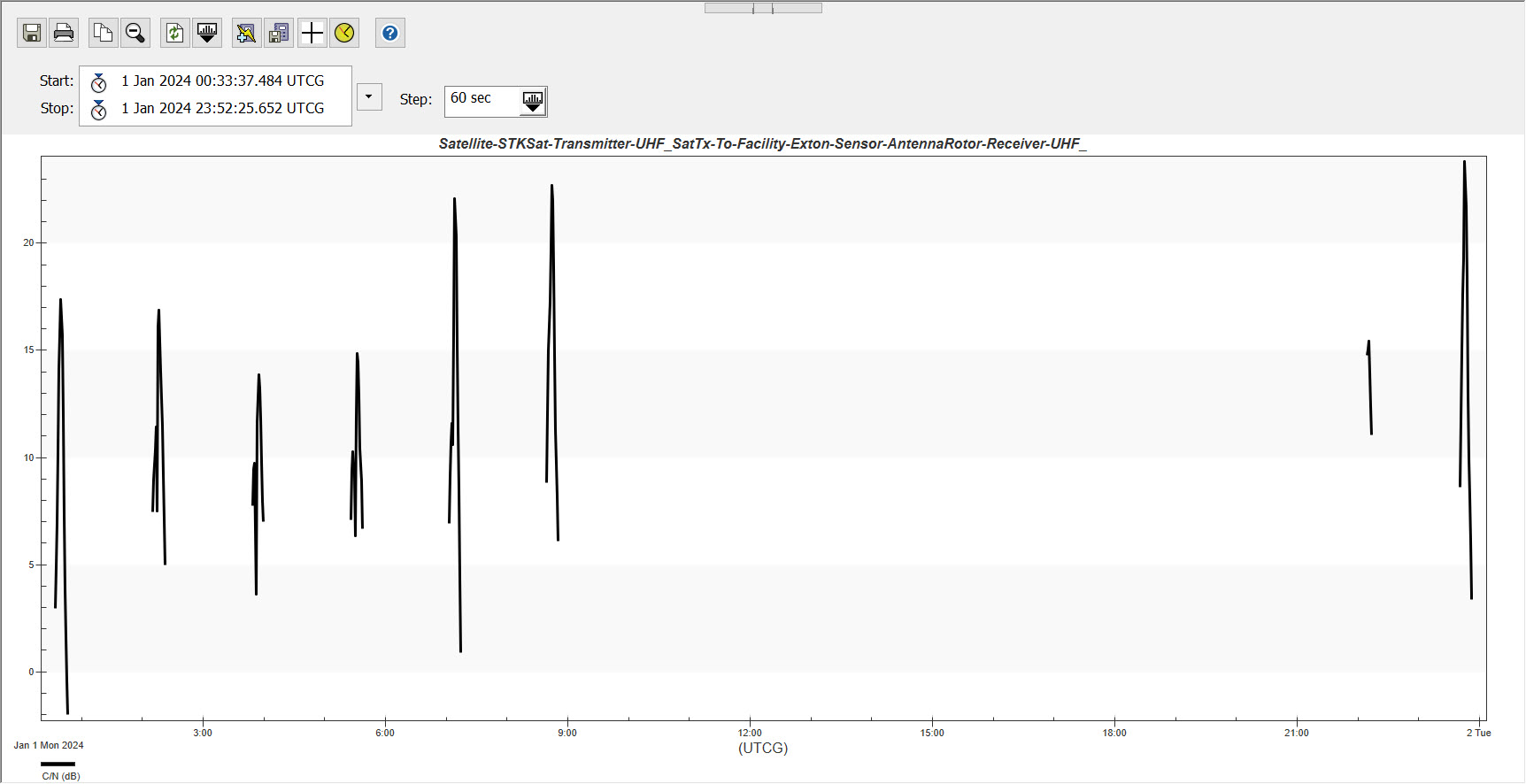 Review the custom link budget report for the UHF downlink to see the affects of the new constraints. If the report was previously opened, then simply refresh it to see the changes.