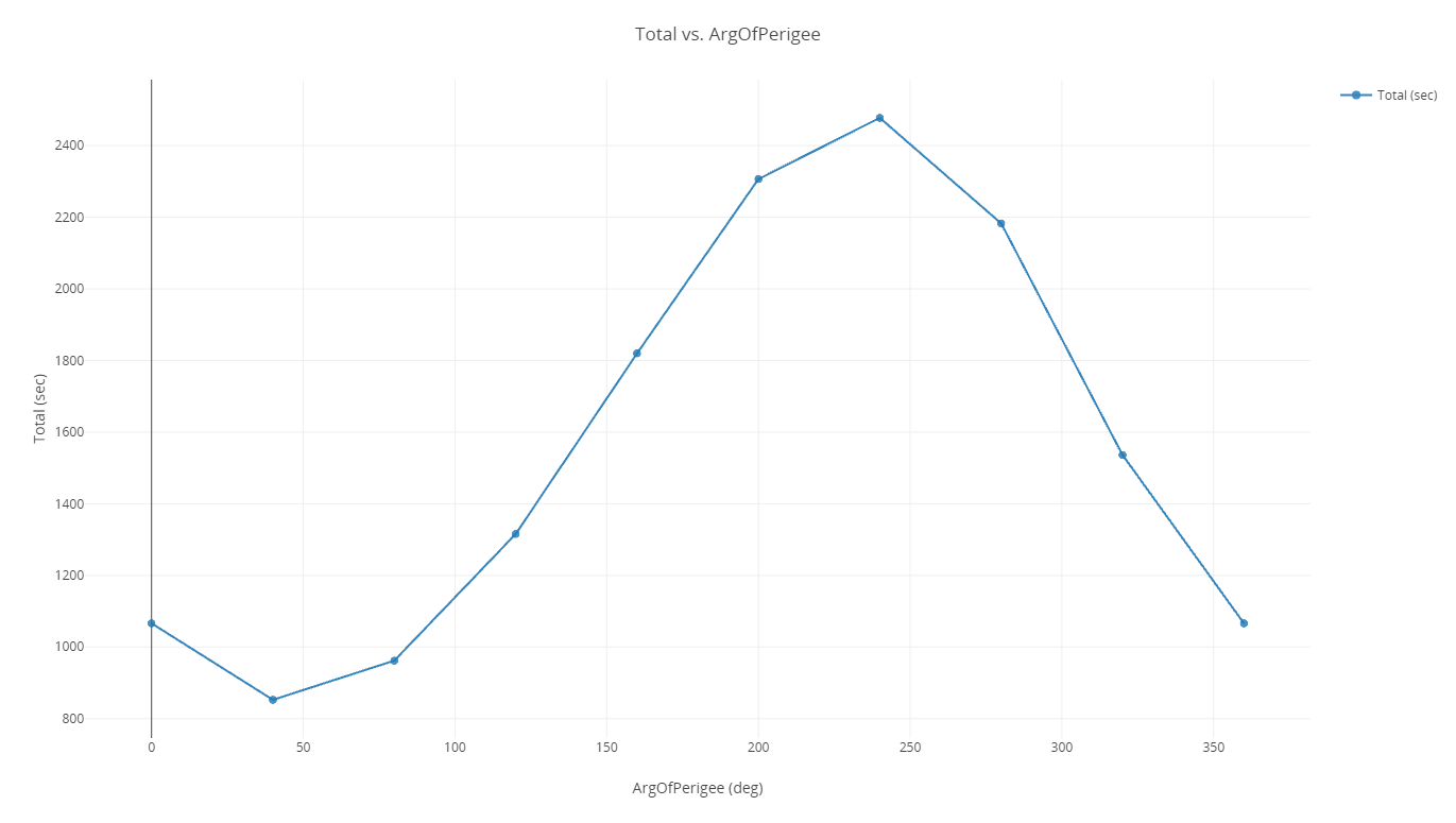 Elliptical orbit Total vs. Argument of perigee 2D Line Plot