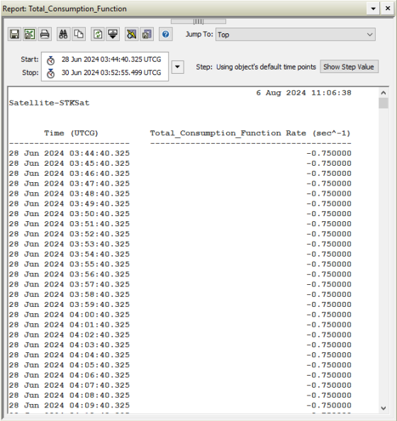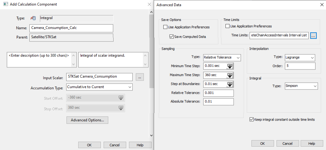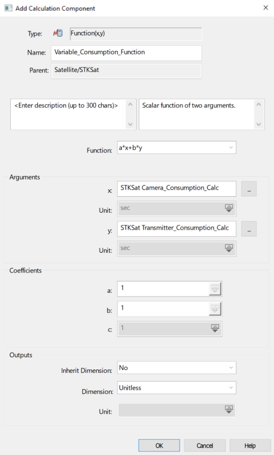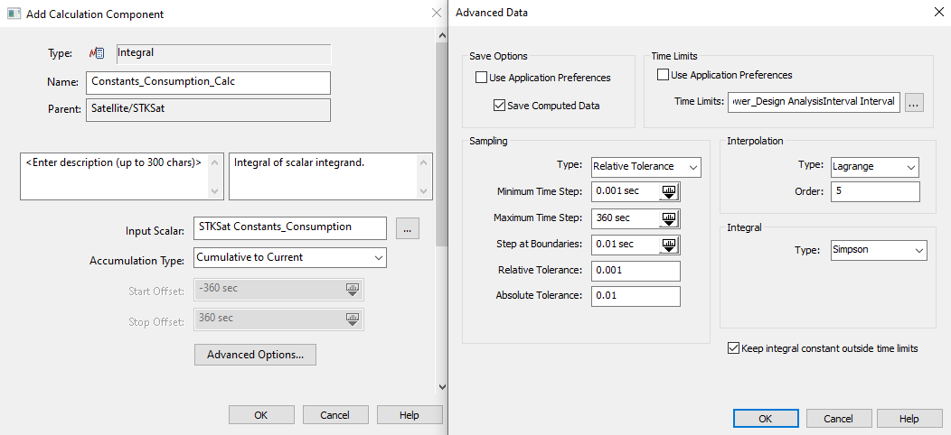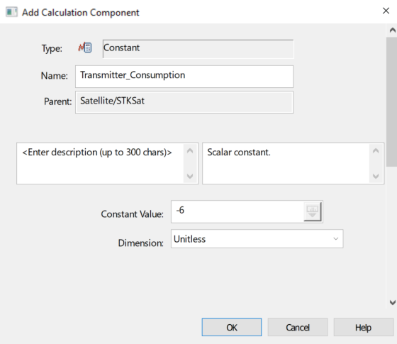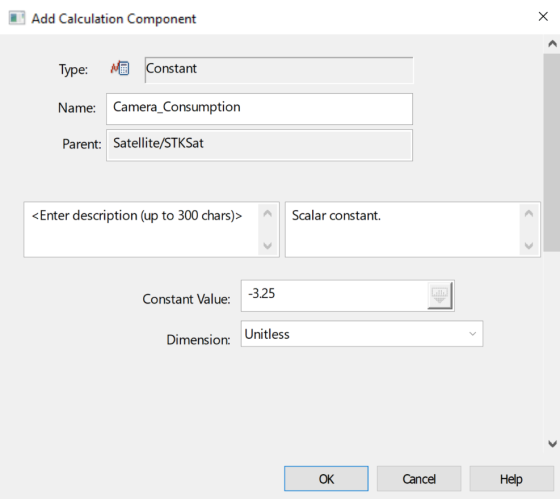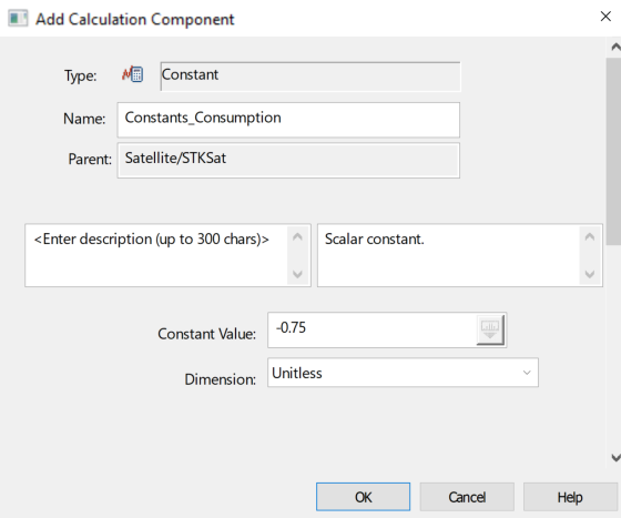 2. Select Constants_Consumption_Calc () in the Scalar Calculations for: STKSat list.