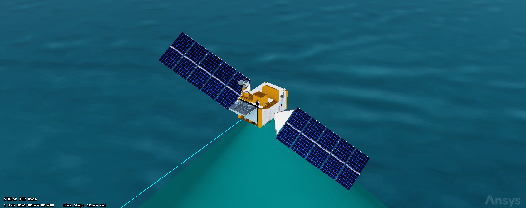 You were only modeling STKSat's solar panels in this lesson for the purpose of analysis. For visualization purposes, you may want to use a high-fidelity model that has had textures and additional articulation points applied for added realism.