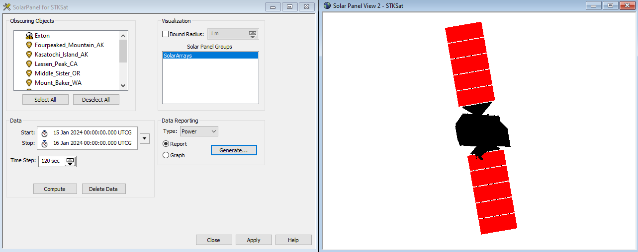 • In the first stage, you will use a model of STKSat and the Solar Panel tool determine when over the course of a year the satellite's solar panels will generate the most and least amount of power.
