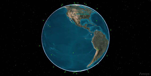 The satellites appear as dots in both the 2D and 3D Graphics window. You can adjust their size if required.