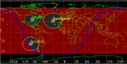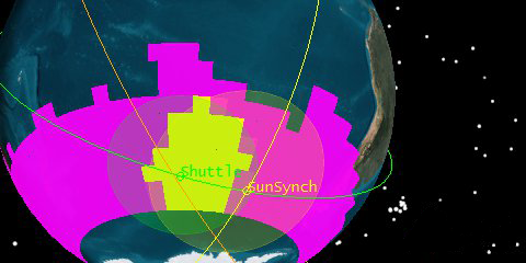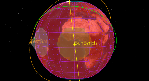 You need to know when any or all of the three satellites can “see” the portion of the Earth’s surface that falls between 60 degree and -60 degrees latitude. Additionally, you would like to know if any areas of the Earth will be covered by two or even three sensors simultaneously, during daylight hours, and if so, for how long.