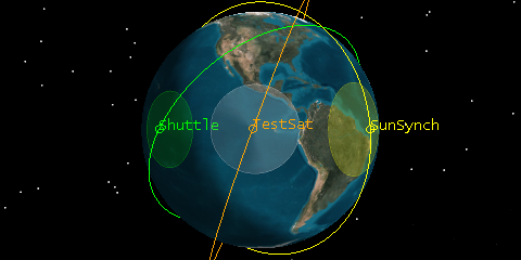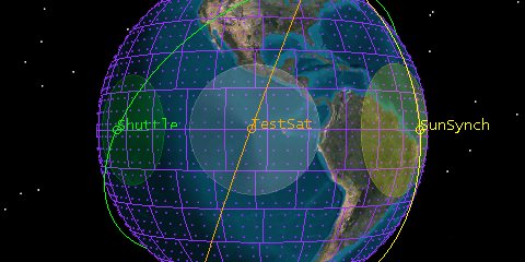 As a university student, your senior design team has worked in conjunction with a consortium of two other universities in designing a new space-based Earth observing payload. Your payload was designed to be an on-orbit space shuttle experiment rather than a stand-alone satellite. The space shuttle has just lifted off with your payload on-board! The other two universities built small satellites carrying this new payload (SunSync and TestSat). Their satellites launched previously on two separate space launches. Because the three Earth observing payloads were all piggy-backed to space as secondary missions of other launches, they ended up in three different orbits.
