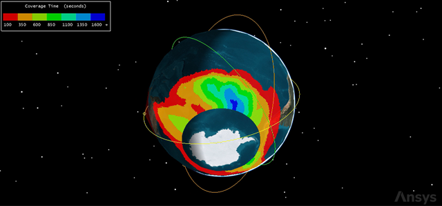 ) display shows that you have at least two assets viewing parts of the southern latitudes over the entire coverage interval. But what are the maximum, minimum, and average values over the entire coverage region?