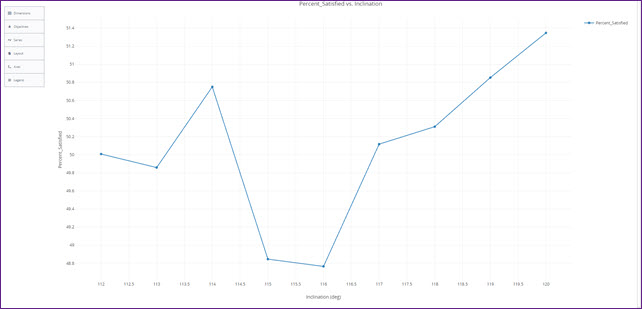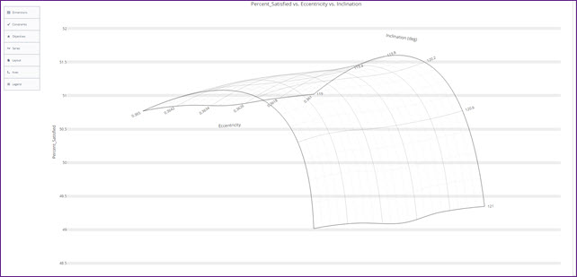 Let's set up a Carpet Plot with Inclination and Eccentricity as the Design Variables and Percent Satisfied as the Response. Setting the design variables is similar to using the Parametric Study Tool except you now have two variables instead of one.