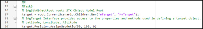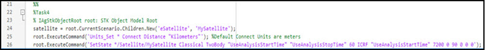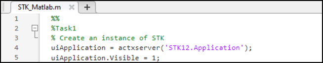 - Type or copy and paste the following to the STK_Matlab.m script onto lines 36 through 40.