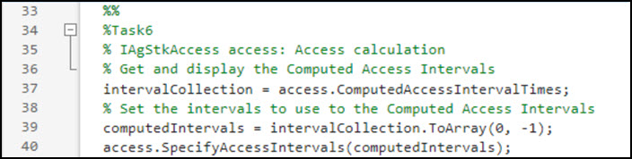 Write a MATLAB script task to get the access interval times from STK.