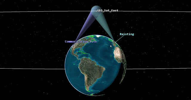 Each ground site has a servo system that is tracking the GEO satellite which you can see in the 3D Graphics window.