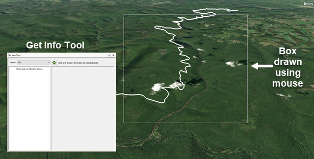 ) on the KML toolbar. - When the Get Info Tool window appears, click Enable object selection pick in 3D window (