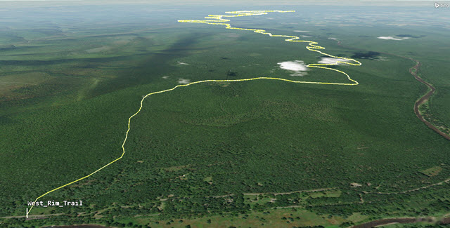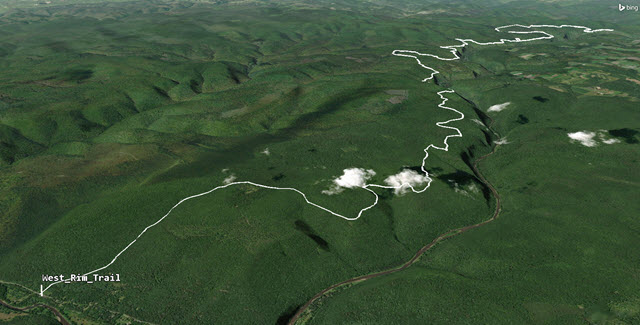- Use your mouse to zoom out until you see the location of West_Rim_Trail and its route.
