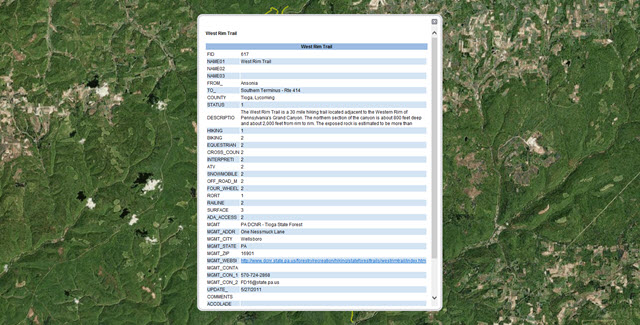 - In the Get Info Tool, click West Rim Trail to view the properties and values associated with each item.