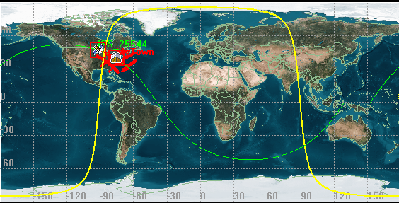 When you display outlines on the map in the 2D Graphics window, lighting conditions are displayed on the surface of the Earth. ISS_ZARYA_25544 (