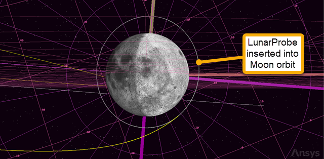 You will now perform an impulsive maneuver to capture the Moon in a circular orbit.