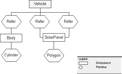 MDL models are arranged in a hierarchy of components and primitives. In the hierarchy, the component is the parent of all primitives and subcomponents contained within. A primitive that refers to a component is the parent of that component.