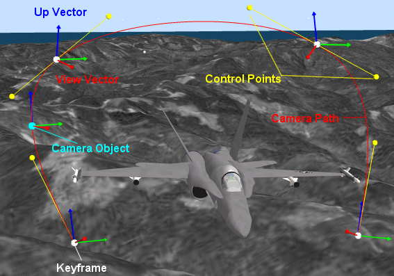 A camera path is made up of a sequence of keyframes. A keyframe stores the viewer position, orientation, and time.