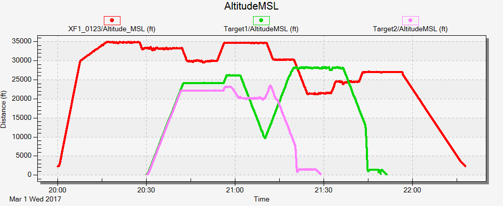 - Click to generate the graph with the Ownship, Target 1, and Target2 MSL altitudes in a single graph.