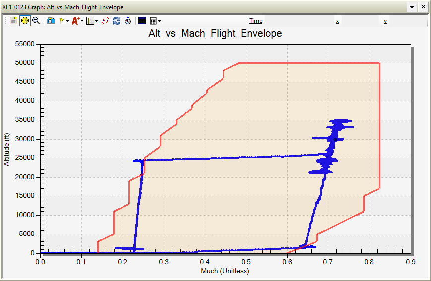 Click to generate the graph of altitude vs mach number with a representative flight envelope added a graph overlay. You can expand the height of the graph window to make it easier to see.