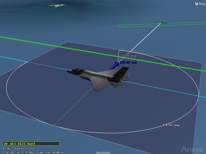 With just the ownship and targets loaded in the scenario, you can generate Quick Looks, such as vectors, angles, and graphs.