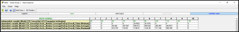 Analyzer imports a copy of the currently loaded Scenario. You can add any of the STK variables as Analyzer input or output variables. If you change a value of a variable in your scenario through the STK interface, you should re-add the variable as an Analyzer variable before running any trade studies with the new value.
