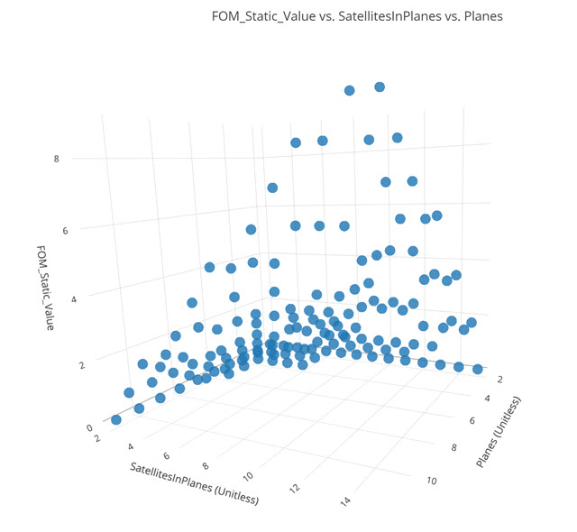 The trade study calculated the minimum number of satellites need to provide persistent coverage of the ground site. Using our own requirements of a minimum of two satellites, you selected the number of satellites and planes to meet this requirement based on the Analyzer DOE Tool analysis.