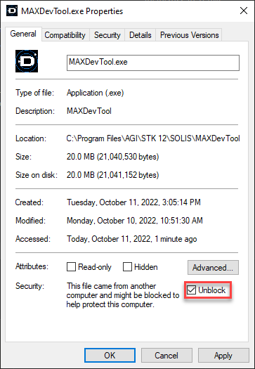 1. Open the folder that contains the DevTool `C:\Program Files\AGI\STK 12\Solis\MAXDevTool.