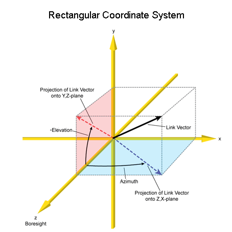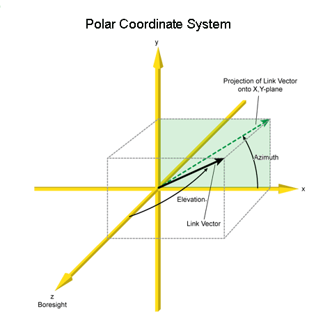 Each system is defined by two angles, azimuth and elevation, that are measured relative to the antenna body axes.