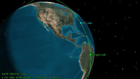 Use Astrogator to model an RPO mission. You will follow some basic steps in modeling missions of one satellite approaching another already in orbit using Astrogator. You will model two satellites already in the same plane, with an “Inspector Satellite” trailing a “Target Satellite” in True Anomaly, and will target two in-plane burns to approach and subsequently circumnavigate the target. You’ll create a Mission Control Sequence (MCS) to perform a nonoptimal transfer to the target satellite and a maneuver to enter into a Natural Motion Circumnavigation (NMC) relative orbit.