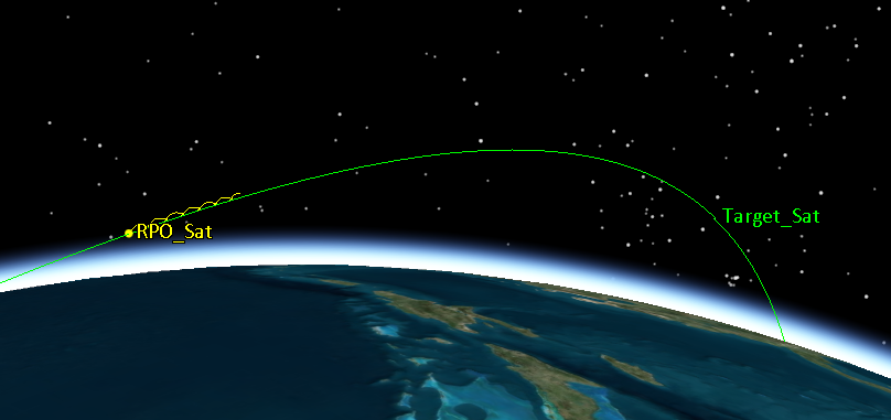 You can show the RPO trajectory relative to Target_Sat. This is an aesthetic change, but it makes the relative maneuvers easier to understand.