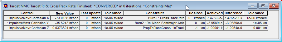 In this differential corrector, you will use the solutions previously determined for the X, Y, and Z maneuver components and further refine them in a single differential corrector.