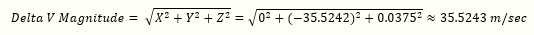 Remember that the resulting magnitude of the maneuver vector is computed using the root of the sum of the squares (RSS). So.