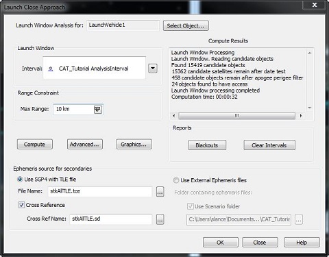 Since your analysis will be considering a lot of different close approaches, it could take some time to compute. Therefore, enable the option that displays a message box when close approach computation is completed.