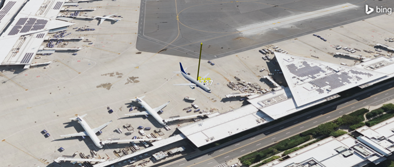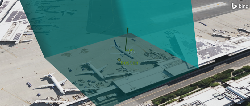 Change the location of the place object to the tarmac near the Boston Logan airport terminals.
