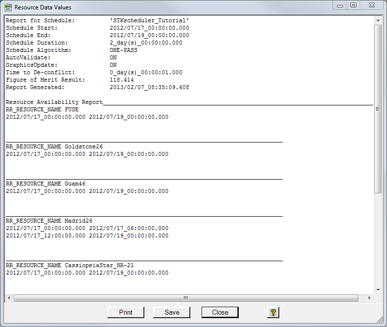 The print button prints an ASCII version of the report to the Windows default printer.