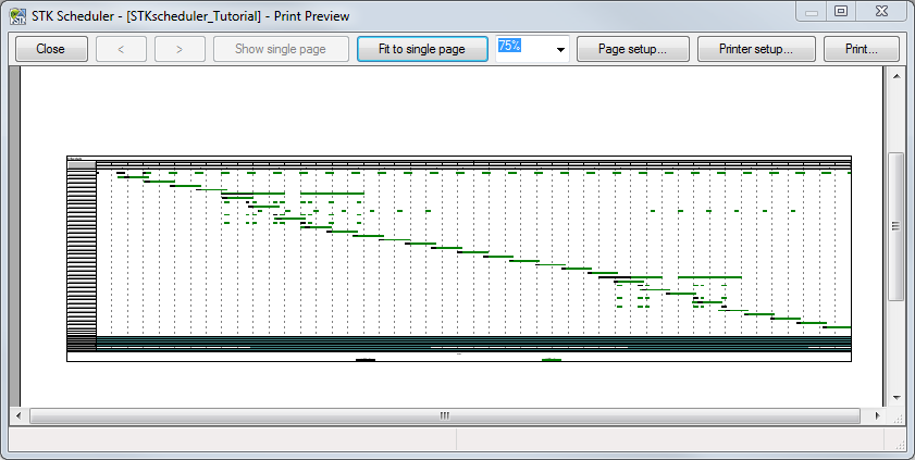 button on the Tool Bar while the STK Scheduler Main Display is set to the Graphical View. - Clicking the Print Button from any Resource Chart.