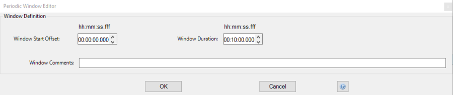The Periodic Window Editor allows you to specify start offset, window duration, and associated comments.