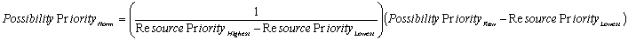 Default resource priorities may be overridden on a task-specific basis through the possibility priority definition on the Task Resource Timeslots Tab. STK Scheduler uses linear interpolation to normalize the user-defined priority values to between 0 and 10 with 10 being higher priority using the following equation: