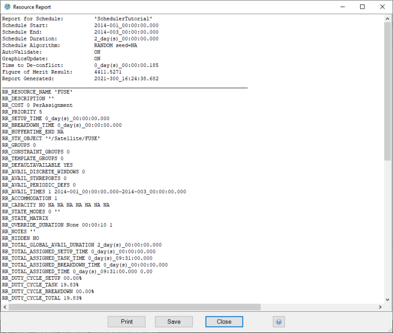 | RR_DUTY_CYCLE_TASK | RR_DUTY_CYCLE_TASK {duty cycle percentage that accounts for resource usage during task time durations only, excluding resource setup time durations and excluding resource breakdown time durations}% | The RR_DUTY_CYCLE_TASK keyword precedes the "Duty Cycle Without Setup and Breakdown Times" value as shown on the Status Tab of the Resource Definition Form. |