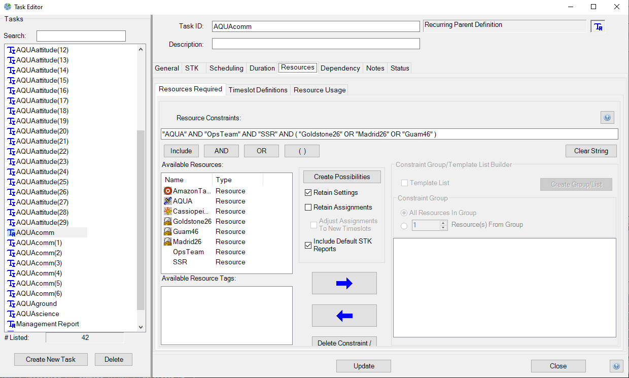 The Resources Tab allows you to specify all of the resource constraints of a task.