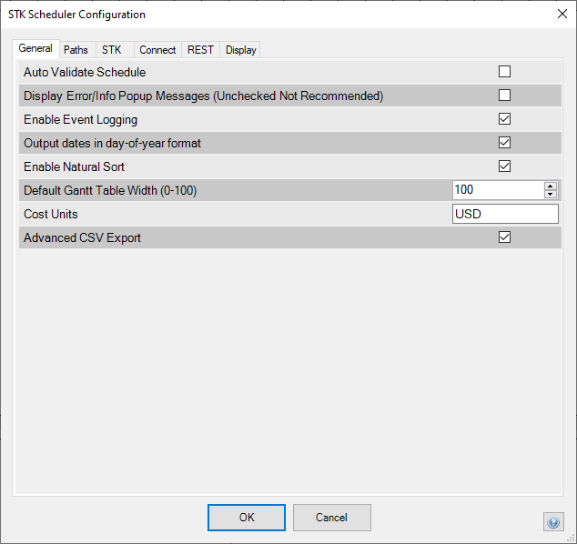 The STK Scheduler Configuration Form allows you to define various properties of STK Scheduler.